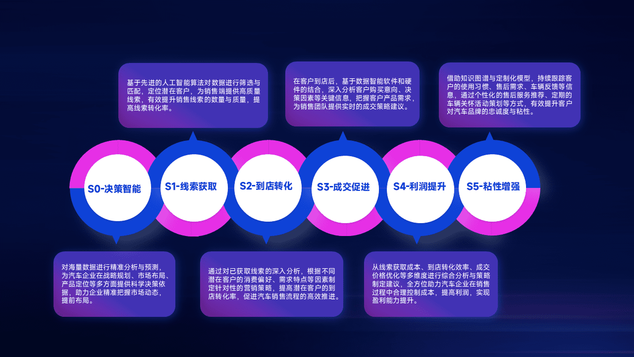 通过拓宽潜在客户来源、、、、优化线索分配并提高到店转化率,,,,以增强销售效率。。。。同时,,,利用线索数据不断优化分析模型,,,有效提升转化率,,,,扩大营销影响力。。
